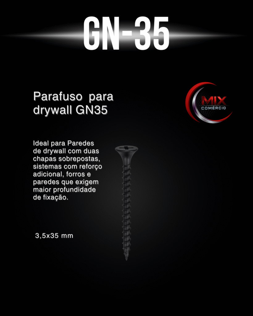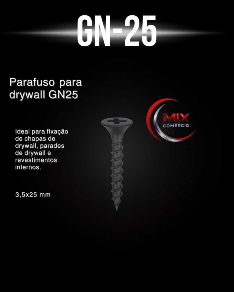 Ideal para fixação de chapas de drywall, parades de drywall e revestimentos internos.